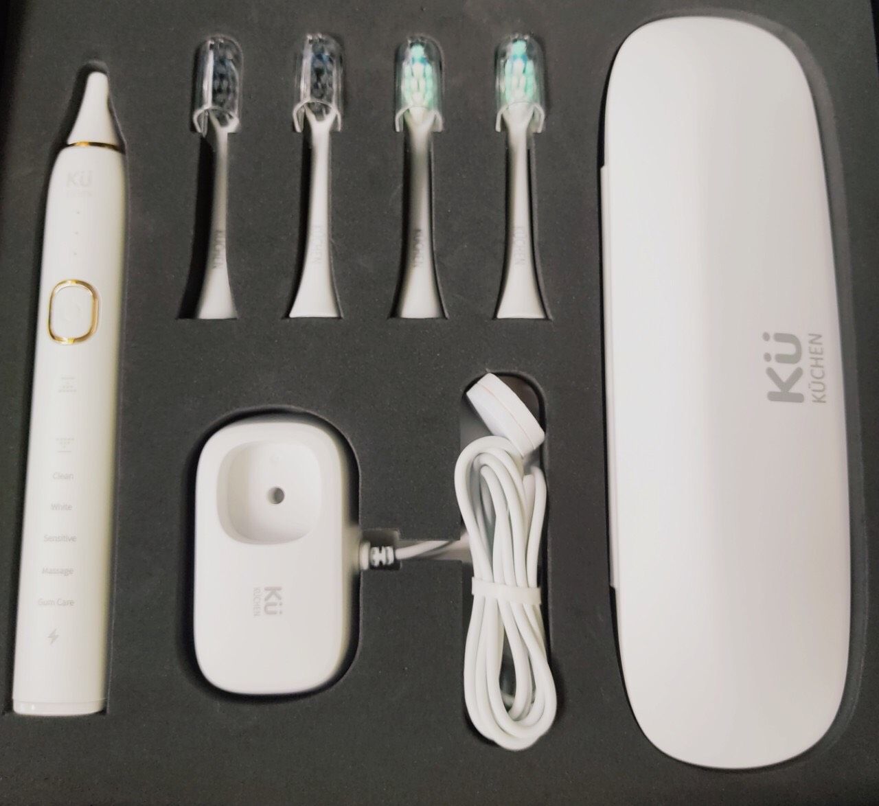 Bàn chải đánh răng Sóng âm KU-DIAMOND CLEAN 9500, sử dụng công nghệ sóng âm Sonic nhẹ nhàng làm sạch răng tối ưu được các chuyên gia nha sĩ hàng đầu khuyên dùng, đồng thời trang bị nhiều tính năng mới hiện đại đánh bay các mảng bám cứng đầu, giúp răng trắng sáng, hơi thở thơm mát, ngăn ngừa các bệnh về răng miệng hiệu quả hơn 10 lần so với các loại bàn chải thông thường.