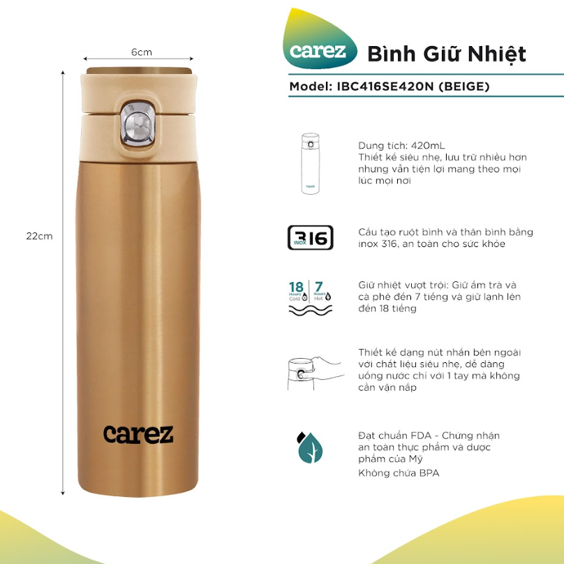 Bình giữ nhiệt CAREZ IBC416SE420N 420ml màu nâu