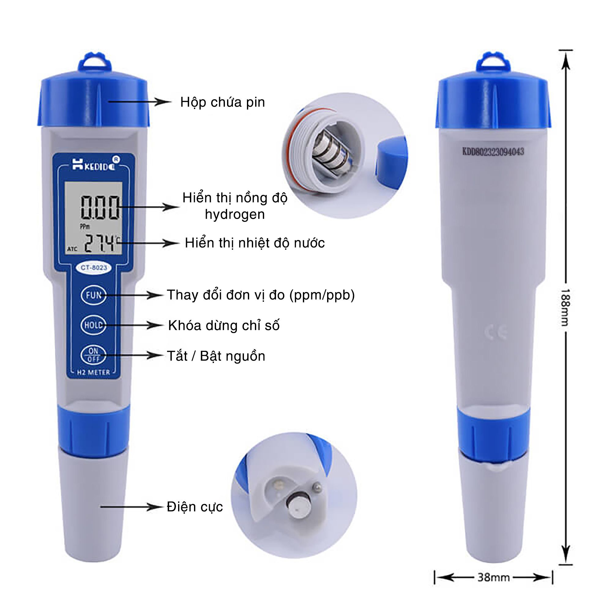 - Bút đo Hydrogen đo chỉ số Hydrogen hòa tan trong nước.
