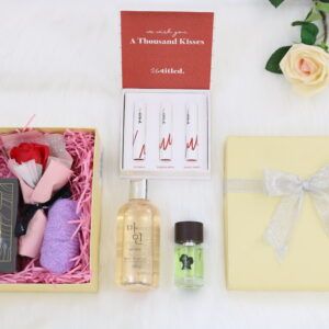 - Đẳng cấp: Hộp quà sang trọng kèm phụ kiện (hoa sáp, găng tay tắm), đóng gói chỉnh chu, không phải lo việc đóng gói quà.