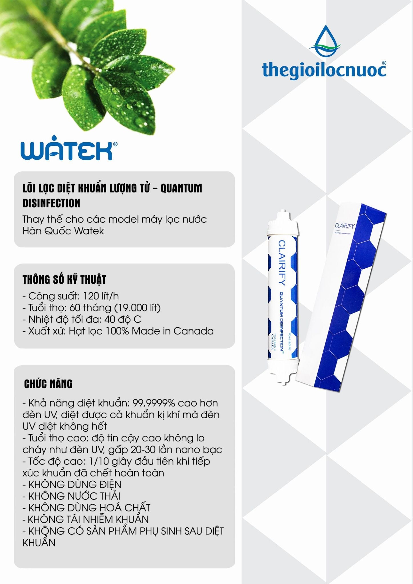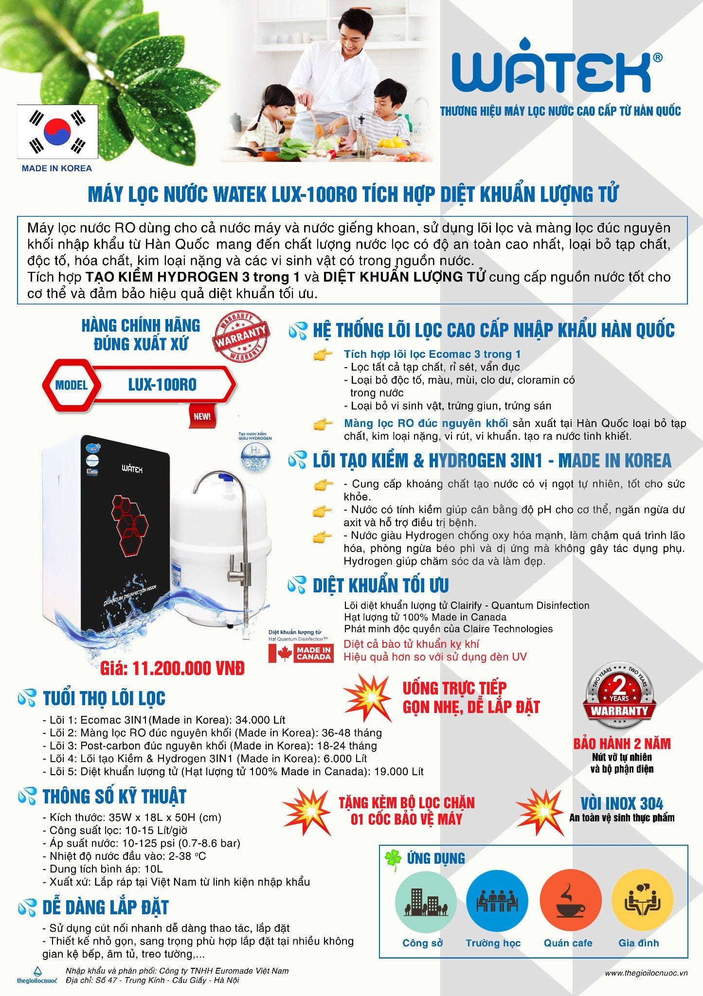 Máy lọc nước Watek lượng tử và hydrogen, model: LUX-100UF