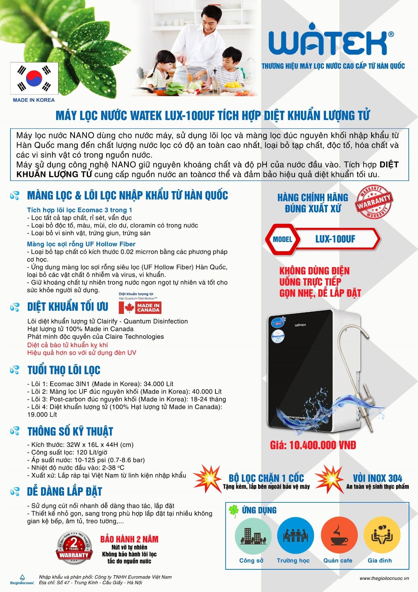 Xuất xứ: Màng lọc và lõi lọc nhập khẩu Hàn Quốc, lắp ráp tại Việt Nam