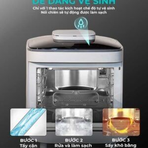 - Sản phẩm 2 trong 1 đa năng này cho phép bạn thỏa sức sáng tạo với hàng nghìn món ăn và phương pháp nấu ăn khác nhau như hấp, chiên, nướng, bỏ lò, nấu súp, tiềm, hay sấy khô. Ngoài ra, chức năng tự vệ sinh bằng hơi nước giúp làm mềm các mảng bám trong quá trình nấu nướng, hỗ trợ việc lau rửa dễ dàng hơn.