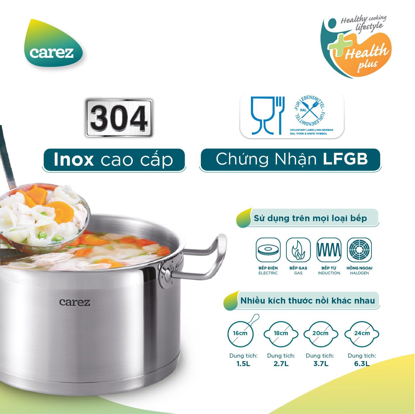 Nồi inox cao cấp CAREZ CPC755SI20SN kích cỡ 20cm