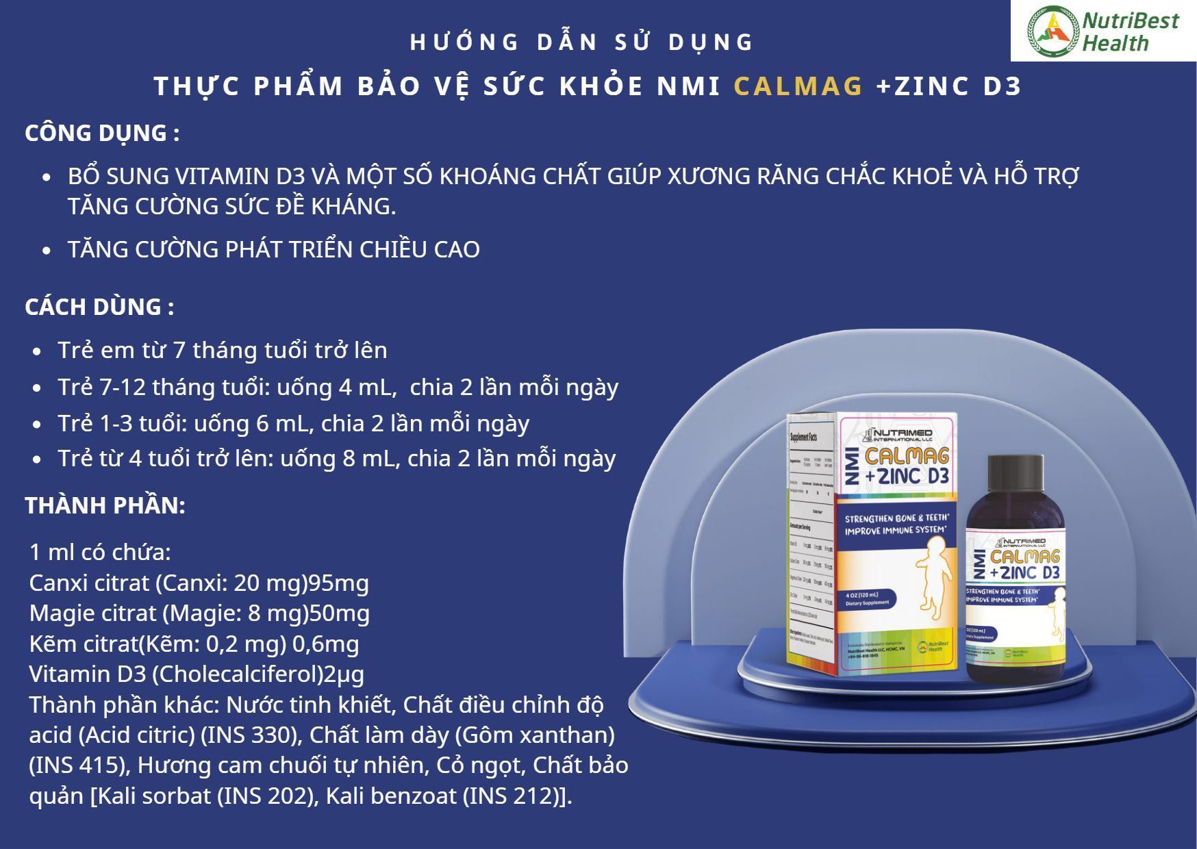 THÔNG TIN SẢN PHẨM NMI CALMAG + ZINC D3