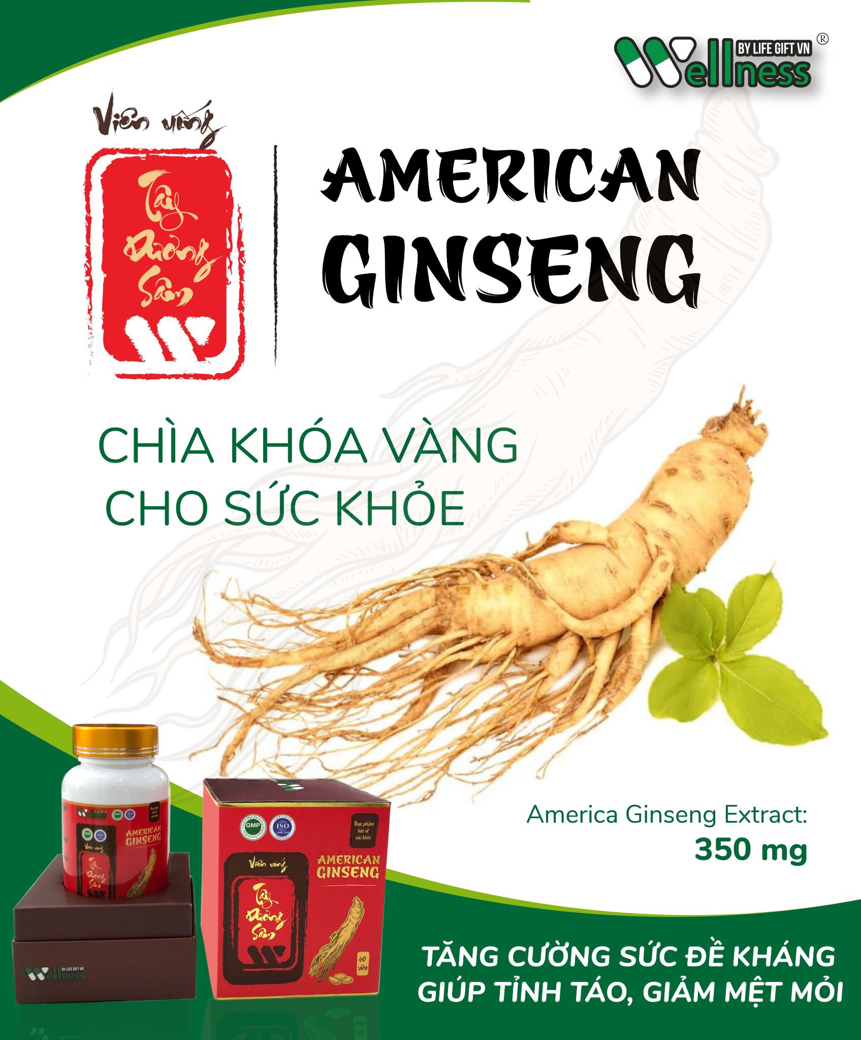 American Ginseng Extract (chiết xuất Nhân sâm Mỹ): 350 mg